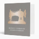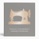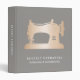 Classeur professionnel et personnalisé représentant une élégante machine à coudre vintage avec un faux motif en feuille d'or sur un fond gris taupe discret.