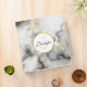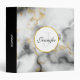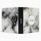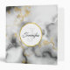 Une classeur avec une motif marbrée moderne et classe. Marbre blanc, noir et gris fumé avec de minces rubans de tourbillons en faux or dans tout le motif. Un cercle blanc avec un cadre en faux or superposé avec votre initiale monogramme et votre nom à l'intérieur.