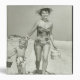 Mère avec le fils (2 ou 3) marchant sur la plage, (B&W), marques de portrait | George | AssetID : 57520344