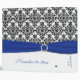 Ce classeur mariage damassé noir et blanc ou album photo avec un ruban FAUX bleu et broche bijoux correspond au faire-part de mariage ci-dessous. Vous pouvez l'utiliser comme classeur wedding planner, livre d'or ou acheter des manches d'album photo et l'utiliser comme album photo mariage. Si vous avez des demandes, envoyez un courriel à niteowlstudio@gmail.com. La papeterie correspondant aux livres d'hôtes est également présentée ci-dessous.