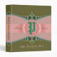 classeur/album mariage design unique avec couleurs de plumes paon parées de ruban en satin rose - Monogramme de pièce centrale devant et derrière : tout le texte est entièrement personnalisable - couleur et style de police.