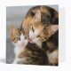 Mère chatte grooms et lèche tendrement son chaton, les deux visages côte à côte. Le toilettage mutuel montre la relation amicale entre les chats. Ce classeur est une idée cadeau pour chat et amoureux des animaux. Une jolie photo de kitty, photo prise par Katho Menden.