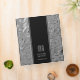 Classeur à anneaux 3 Métal argent noir monogrammé. Personnalisez entièrement ce dossier à anneaux en métal argenté à motif aluminium métallisé faux écrasé avec votre monogramme, nom, profession et coordonnées.