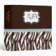 Brun chocolat mignon, bleu de poudre, le classeur blanc d'impression de zèbre comporte le motif élégant de rayure sur l'avant et le dos avec le cadre lunatique de rouleau sur l'avant. Ajoutez votre texte fait sur commande à l'avant et à l'épine.