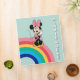 Ce graphique amusant présente Minnie Mouse posant sur un arc-en-ciel coloré.