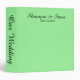 Classeur vert clair que vous pouvez customiser avec votre nom ou texte sur le devant. Le texte sur la colonne vertébrale peut également être modifié.