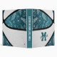 Ce mignon basketball sur le thème 3 anneau classeur est l'image réaliste d'un basketball abstraite surdimensionné qui a recoloré alternant panneaux turquoises et blancs avec des fleurs de doodle délicates dessinées à la main, plumes et paislies modelées sur les panneaux turquoises du basketball reflété sur la couverture avant et arrière - personnaliser avec le nom de l'athlète et monogramme, lettre de varsity, ou numéro de maillot - par katz_d_zynes