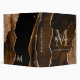 Moderne Elegant Désert Or Black Agate Monogramme 3 anneau classeur