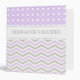 Classeur de la recette moderne lilas purle, gris, blanc chevron et pois motif. Un design chic, élégant, girly cuisine design utilisant les rayures de zigzag classique et pois mignons avec un look contemporain mais vintage dans un sens. Il y a un cadre au centre. Vous pouvez modifier la couleur arrière - plan - violet et la couleur du texte en choisissant parmi plus de 200 couleurs dans le tableau de couleurs Zazzle.