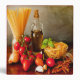 Sur la table de la cuisine les ingrédients pour une sauce à l'arabbiata savoureuse et épicée : tomates, basilic, piment, ail, oignon, huile d'olive. Utilisez sur toutes sortes de nouilles : penne, spaghetti, linguine. Classeur idéal pour vos meilleures recettes !