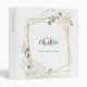 Classeur Monogramme cadre géométrique fleurs blanches or