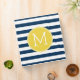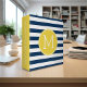 Classeur Monogramme jaune Motif rayé blanc et marine