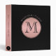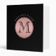 Classeur Monogramme Moderne Cercle Or Rose & Noir