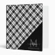 Classeur Monogramme Noir Blanc Plaid Feminine Script Office