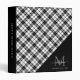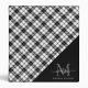 Élégant Monogramme Noir Blanc Rustique Plaid Motif Gris Script Nom Accueil Bureau Travail professionnel Retour à l'école Recette 3 anneau classeur