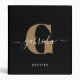 Élégant Monogram Gold Black White Script Nom Recette 3 anneau classeur