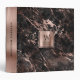 Un classeur élégant avec une image arrière - plan de marbre noir avec des veines d'or rose. Personnalisez-le avec votre initiale monogramme en police décorative et votre nom en lettres compactes noires sur un carré en feuille d'or rose brossé. Customisez la colonne vertébrale avec du texte noir sur un arrière - plan rose de feuille d'or faux.
