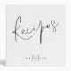 Monogramme Stylish Script Black White Recette. L'en-tête principal Recipes est dans un script élégant et se personnalise facilement avec le nom et l'initiale du destinataire.