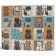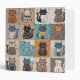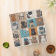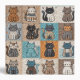 Des carrés colorés et courbés présentent différents chats avec des motifs et des couleurs différents, chacun assis contre un arrière - plan unique