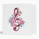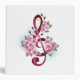 Pink treble clef with delicate, detailed pink Japanese cherry blossoms against white background painted over with light blue paint Blooming pink sakura.