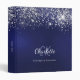 Un classeur élégant pour votre travail, l'école, les loisirs. Un fond bleu marine élégant. La couleur bleue est inégale. Décoré de paillettes argentées fausses. Personnalisez et ajoutez votre prénom, vos initiales de monogramme et votre nom complet sur le devant.