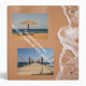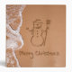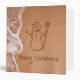 Illustration de Noël ensoleillée avec un bonhomme de neige et Joyeux Noël écrit dans le sable sur la plage à côté de l'océan.
