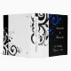 Design principalement noir avec une bande d'éléments blancs et décoratifs tourbillonnant tourbillonnant. Customisez en ligne avec vos coordonnées de mariage.