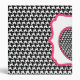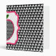 Un classeur avec une conception noire de pied-de-poule sur l'avant, le dos, et l'épine. Parties roses surdimensionnées de couvertures de cadre de parenthèse d'avant, de dos, et d'épine. Pomme de pied-de-poule à l'intérieur de cadre.
