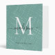 Classeur à 3 anneaux Nom de script de monogramme de motif vert menthe sarcelle élégant et moderne