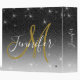 Classeur Nom de script pailleté noir or monogramme