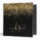 Glam Gold Parties scintillant Élégant Classeur Monogramme. Personnalisez facilement ce design classeur chic et branché avec une élégante parties scintillant dorée sur un arrière - plan noir. Le design comprend votre monogramme manuscrit avec de jolis tourbillons et nom.