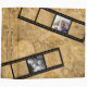 Ce 2" classeur offre un contact de nostalgie pour toutes vos photos préférées. Arrière - plan sale avec des griffonnages, des flourishes et des fleurs avec trois bandes anciennes de film. Chaque bande a une tache pour une de vos photos préférées.