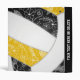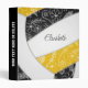 Ce volleyball girly thème 3 anneau classeur pour elle présente l'image abstraite surdimensionnée d'un volleyball qui a des panneaux noir, or et blanc reflété sur la couverture avant et arrière - un doodle motif de paislies, fleurs et plumes en blanc couvre les panneaux noir et or du volleyball - personnalisez avec le nom de l'athlète - par katz_d_zynes