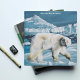 Un ours blanc polaire dans la neige si l'hiver arctique avec un iceberg derrière.