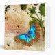 Papillon bleu vintage sur éphémère et arrière - plan floral. Ajoutez un nom ou un texte personnalisé.