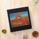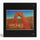 Ce design amusant présente le Parc National des Arches avec un look les années 70 carte postale de voyage. Le canyon rouge et la célèbre arche rouge font de cette carte de parc national un gagnant. Moab, Utah.
