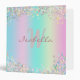 Unicorn Holographic Parties scintillant Classeur - Un Classeur à la mode aux couleurs étincelantes avec une parties scintillant mixte turquoise, rose et mauve et jaune clair. Vous pouvez personnaliser ce Classeur en ajoutant votre nom et vos initiales.