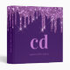 Un classeur élégant pour l'école, le bureau, do-it-yourself procés ou les reçus de nourriture. Un arrière - plan violet élégant, profond et féminin, texte rose. Décoré avec des gouttes de faux parties scintillant violet, la peinture goutte à goutte. Personnalisez et ajoutez vos initiales monographiques et votre nom sur le devant. Épine : ajoutez votre propre texte.