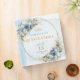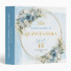 Celebra un momento inolvidable con este álbum de recuerdos personalizado para Quinceañera / 15 años, diseñado en un delicado estilo boho o bohemio. La combinación de tonos azul polvo, azul pastel y azul claro, junto con flores suaves, eucalipto y follaje verde, crea una estética elegante y moderna, realzada con detalles en dorado que aportan un toque de lujo y distinción.