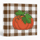 Orange pompine on a brown white buffalo plaid checkered patground. Idéal design for autumn and vegetables lovers.
