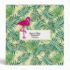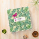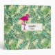 Un classeur personnalisé avec un motif feuille vert tropical et un cadre blanc avec une bordure dorée superposée. Une illustration de flamand rose apporte une touche de fantaisie.