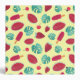 Pastèque et crème glacée aux feuilles tropicaux vert monstère sur le design arrière - plan jaune.