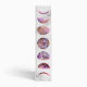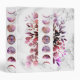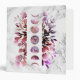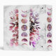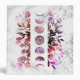Les phases de la lune dépeintes dans de jolis tons de bleu et de lavande, encadrées par des éléments botaniques assortis à un doux arrière - plan en marbre blanc et gris.
