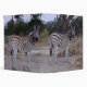 Double Take Zebras Nature Les photos et les cadeaux présentent une belle photographie de deux zèbres qui regardent tous deux le spectateur pris lors d'une pause snack par Kurt Keller avec un appareil photo de 35 mm pendant un safari africain au Botswana, en Afrique du Sud et au Zimbabwe. Chaque zèbre est unique porte son propre motif de rayures malgré la double prise. Quiconque aime les animaux africains, la faune et la flore, et tous les amateurs de zèbres apprécieront cette belle photo d'un deux zèbres debout dans la savane.