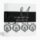 Planificateur blanc noir de mariage damassé de monogramme. Art et conception d'Elke Clarke©2010. Plus conçoit disponible chez WhiteWhimsicalWeddings.blogspot.com. L'art et la conception exclusifs de wedding planner de motif et de monogramme de damassé d'Elke Clarke ©2010 customisent avec la votre information, modèle de couleurs et polices de mariage. C'est une grande manière de rester organisée ou donner loin comme cadeaux avec des souvenirs de mariage.