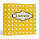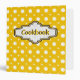Classeur de recette jaune, blanc rétro poka point motif mignon, girly, avec deux pois de taille en jaune et blanc et le mot livre de cuisine dans un cadre damassé avec contour noir et jaune. Personnalisez-le avec votre texte pour d'autres utilisations comme notes de musique, mode, classeur d'école ou même pour des photos.