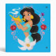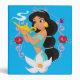 Princesse Jasmine tenant la lampe magique, bordée d'un cadre rose orné avec un lotus et des bijoux.