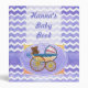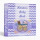 Cute Baby Carriage Purple Chevron Baby Book par ITD Colours Galore présente notre motif de couleur bonbon bleu et blanc zig zag avec notre texture signature dans l'arrière - plan avec une bande texturée violet et pièce centrale décorative avec un mignon bébé pram vintage tenant un ours en peluche. Sur le dos, le motif chevron continue avec une bande violette qui a un motif de mignons jouets de bébé qui court à travers elle. Gardez la trace de tous les premiers de votre bébé, à commencer par votre chevron Purple Sun baby shower.