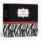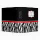 Motif noir et blanc mignon de rayure d'amusement de caractéristiques de classeur d'impression de zèbre sur l'avant et le dos avec des accents noirs et rouges. Ajoutez votre texte fait sur commande à l'avant et à l'épine.