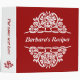 Motif rose rouge blanc avec des rubans classeur de recette qui présente de beaux roses blancs avec des rubans de style victorien-Art Nouveau sur arrière - plan rouge. Cet élégant design floral utilise un élément fleuri vintage de façon contemporaine. C'est un design modèle entièrement personnalisable qui peut être personnalisé.